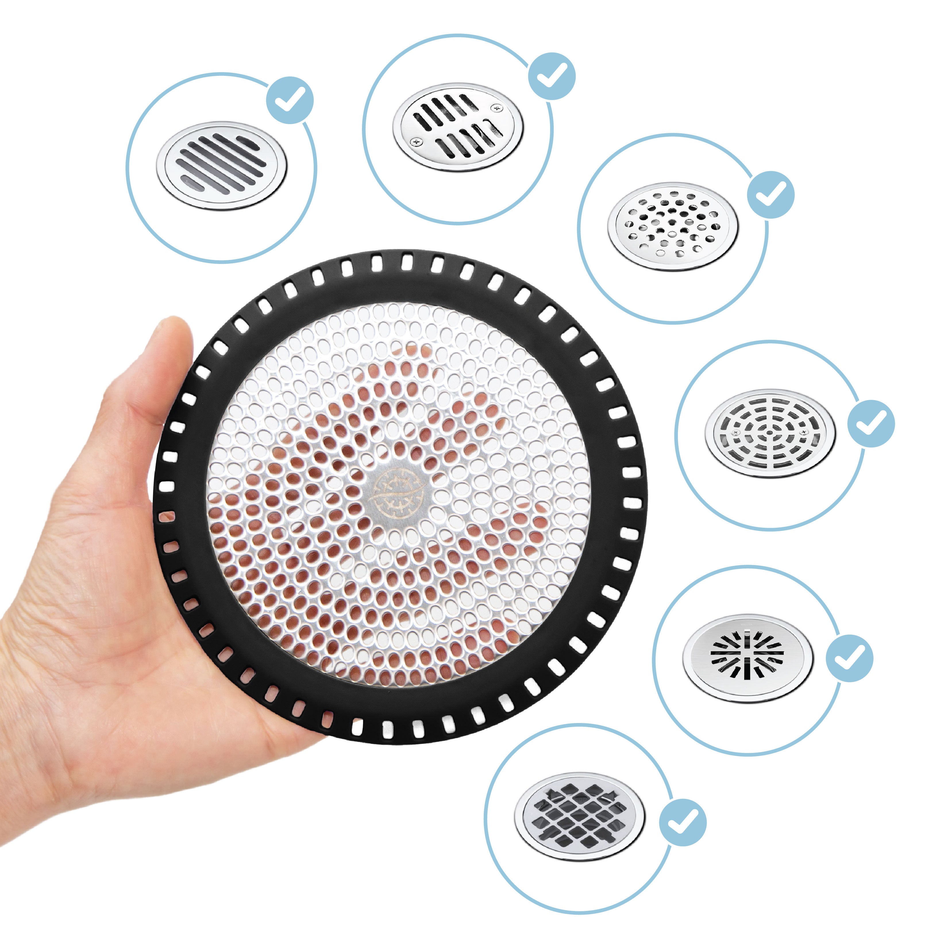 The Ultra ShowerRing is designed to fit a wide range of drain sizes in both walk-in showers and shower stalls, making it versatile for various bathroom setups. Additionally, its silicone edge ensures continuous water flow, truly making it the last drain protector you'll ever need.