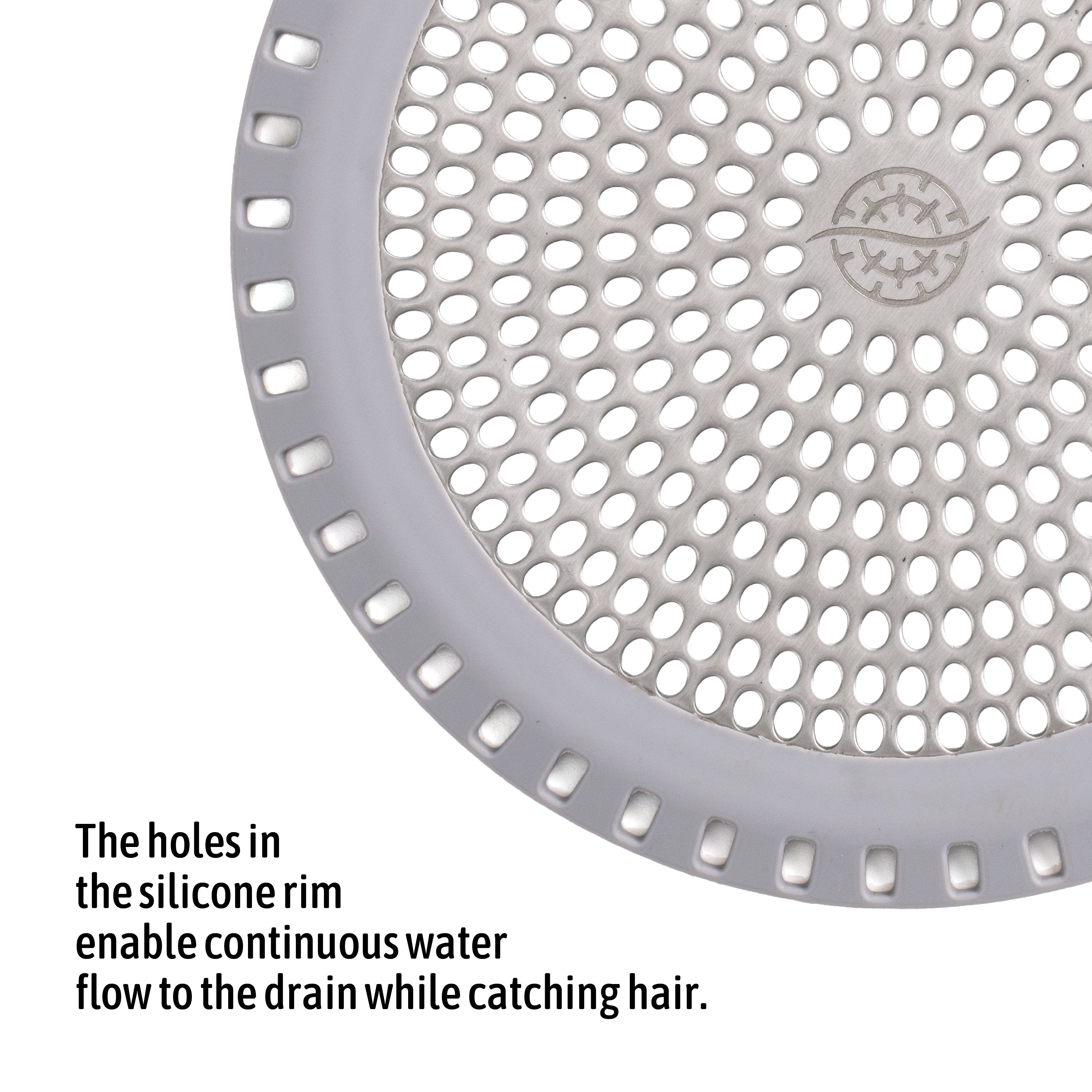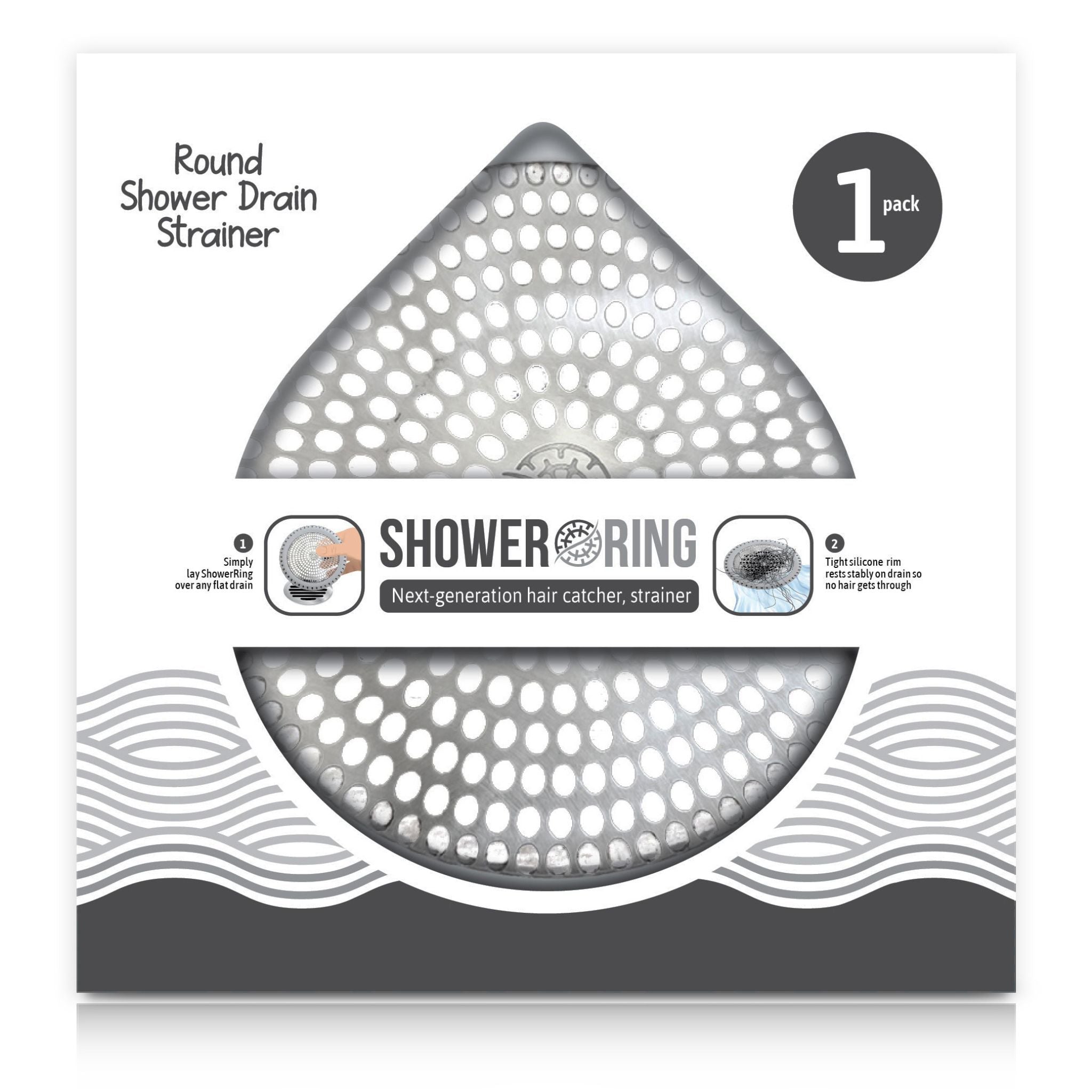The Ultra ShowerRing is a premium drain protection device designed for use in shower stalls. It is crafted from durable 304 stainless steel, known for its rust resistance and longevity, and features a silicone edge to ensure a secure fit and prevent slippage. This combination allows it to effectively catch hair and debris while ensuring water flows freely, making it an essential accessory for maintaining a clean and clog-free shower drain
